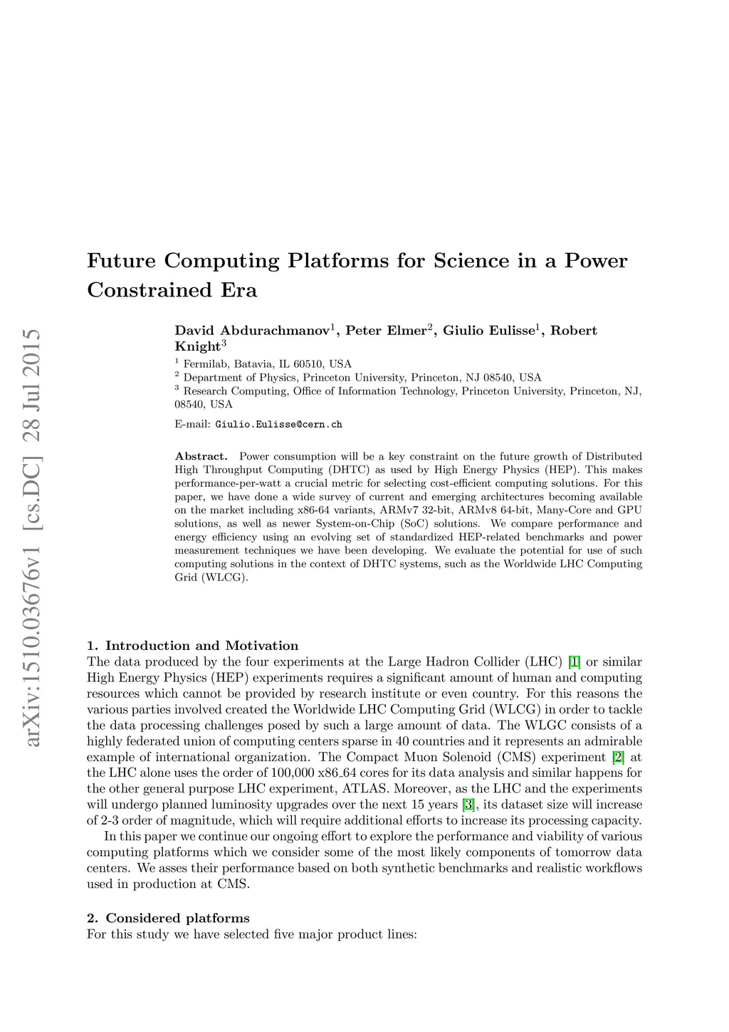 Future Computing Platforms for Science in a Power Constrained Era