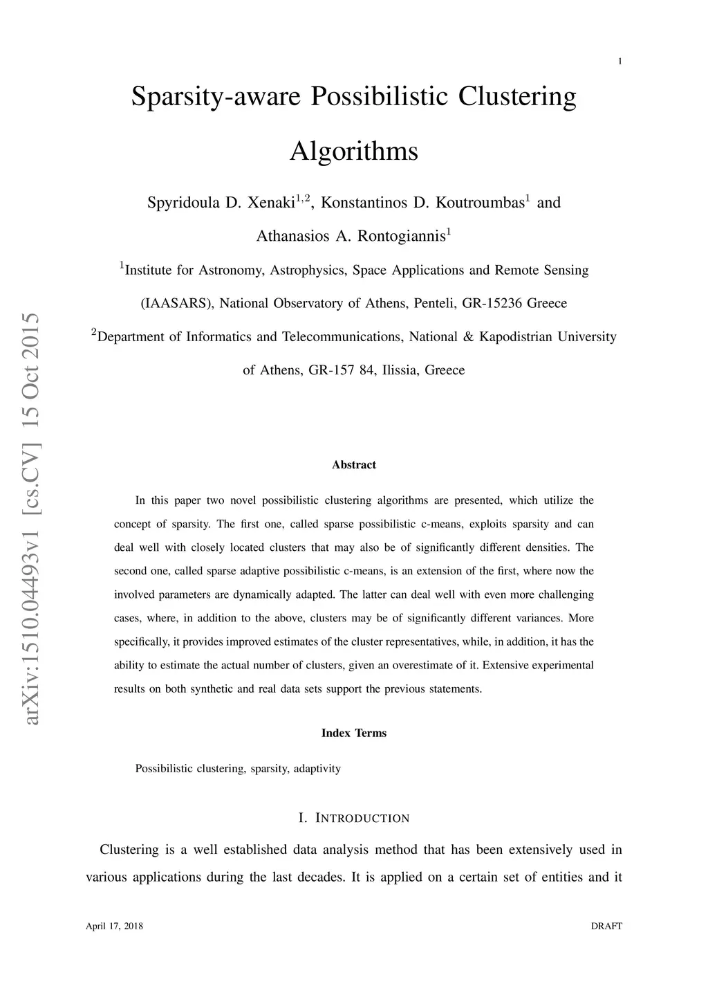 In this paper two novel possibilistic clustering algorithms are presented, which utilize the concept of sparsity. The first one, called sparse possibilistic c-means, exploits sparsity and can deal well with closely located clusters that may also be of significantly different densities. The second one, called sparse adaptive possibilistic c-means, is an extension of the first, where now the involved parameters are dynamically adapted. The latter can deal well with even more challenging cases, where, in addition to the above, clusters may be of significantly different variances. More specifically, it provides improved estimates of the cluster representatives, while, in addition, it has the ability to estimate the actual number of clusters, given an overestimate of it. Extensive experimental results on both synthetic and real data sets support the previous statements.