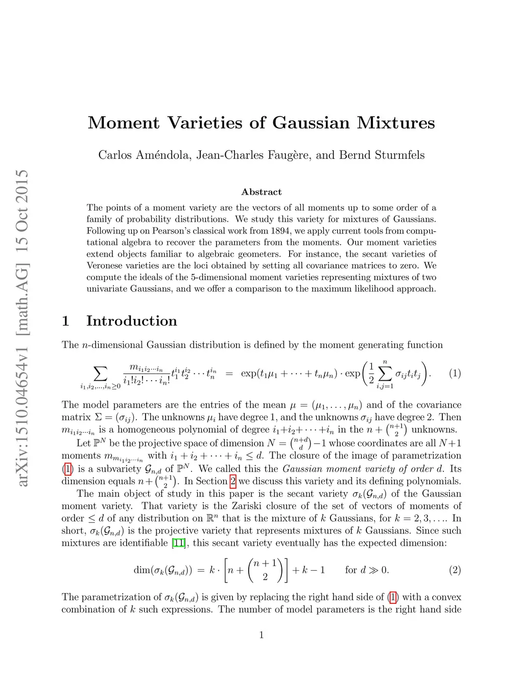 The points of a moment variety are the vectors of all moments up to some order of a family of probability distributions. We study this variety for mixtures of Gaussians. Following up on Pearson's classical work from 1894, we apply current tools from computational algebra to recover the parameters from the moments. Our moment varieties extend objects familiar to algebraic geometers. For instance, the secant varieties of Veronese varieties are the loci obtained by setting all covariance matrices to zero. We compute the ideals of the 5-dimensional moment varieties representing mixtures of two univariate Gaussians, and we offer a comparison to the maximum likelihood approach.