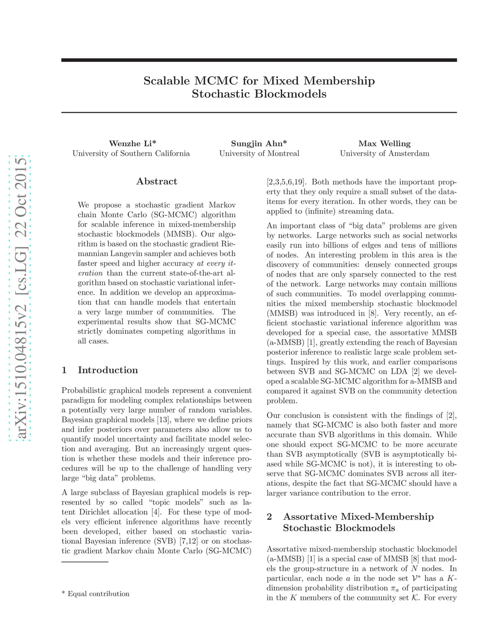 Scalable MCMC for Mixed Membership Stochastic Blockmodels