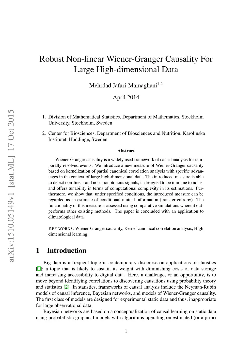 Robust Non-linear Wiener-Granger Causality For Large High-dimensional