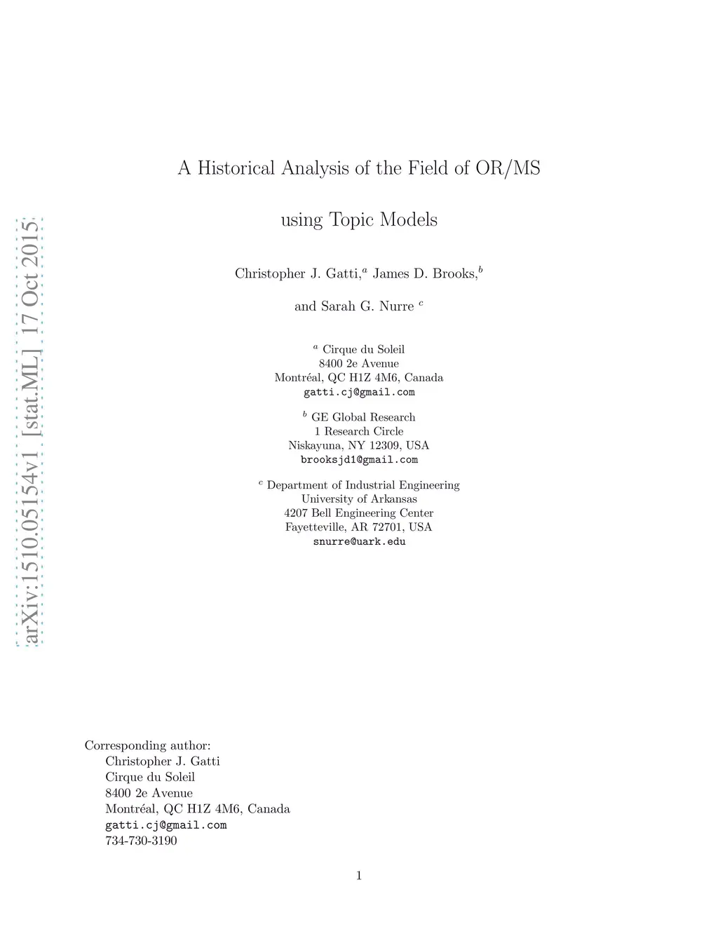 A Historical Analysis of the Field of OR/MS using Topic Models