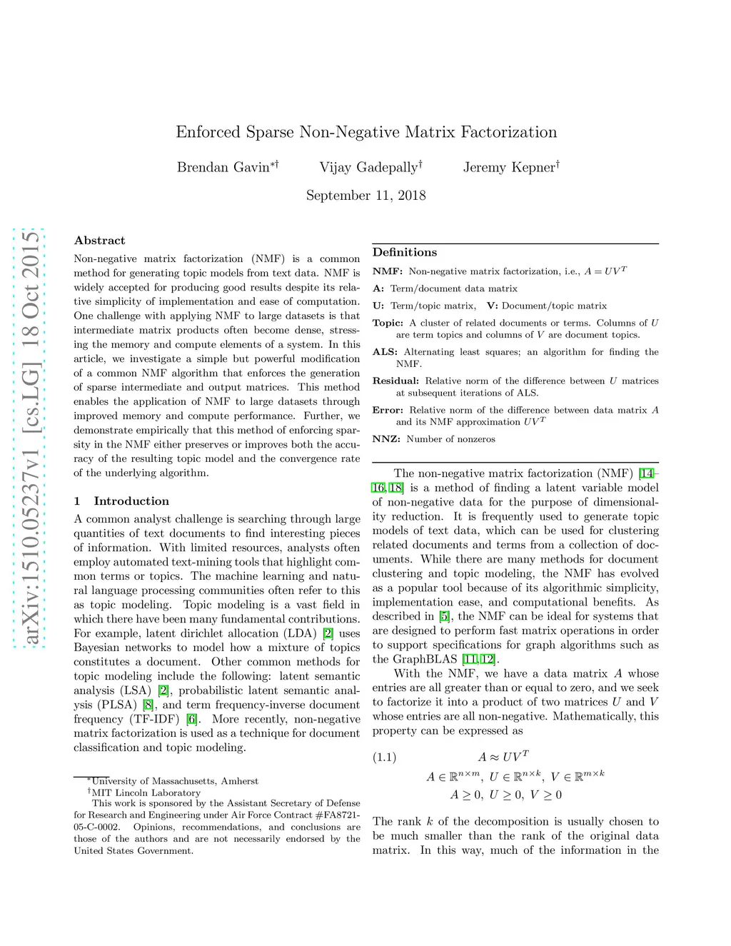 Large Enforced Sparse Non-Negative Matrix Factorization