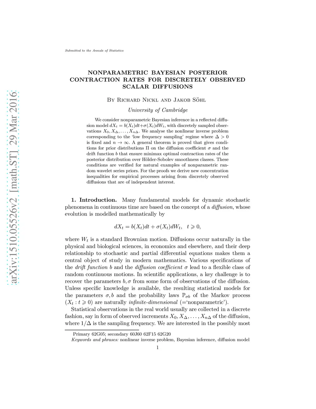 We consider nonparametric Bayesian inference in a reflected diffusion model with discretely sampled observations . We analyse the nonlinear inverse problem corresponding to the `low frequency sampling' regime where is fixed and . A general theorem is proved that gives conditions for prior distributions on the diffusion coefficient and the drift function that ensure minimax optimal contraction rates of the posterior distribution over H\"older-Sobolev smoothness classes. These conditions are verified for natural examples of nonparametric random wavelet series priors. For the proofs we derive new concentration inequalities for empirical processes arising from discretely observed diffusions that are of independent interest.