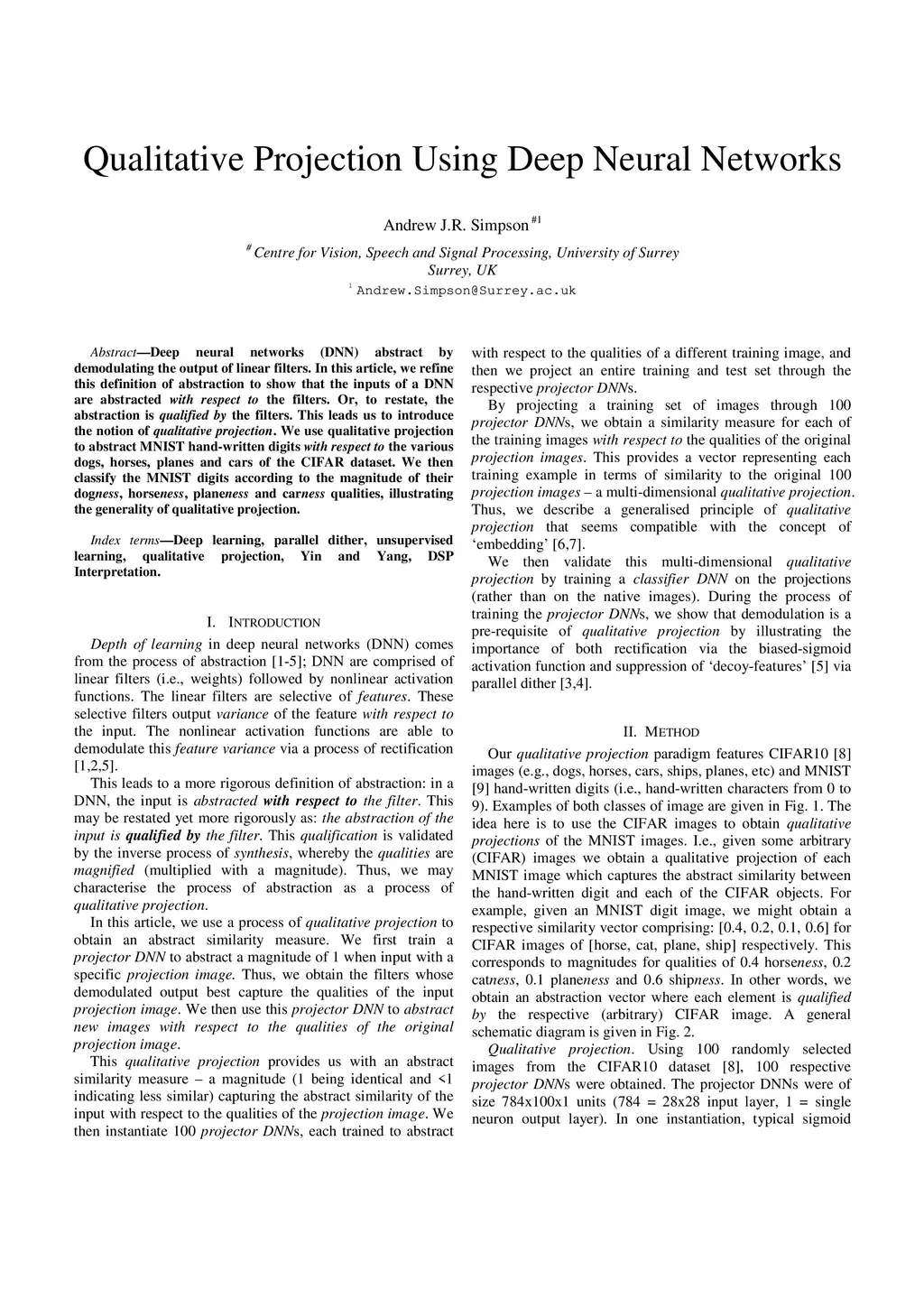 Deep neural networks (DNN) abstract by demodulating the output of linear filters. In this article, we refine this definition of abstraction to show that the inputs of a DNN are abstracted with respect to the filters. Or, to restate, the abstraction is qualified by the filters. This leads us to introduce the notion of qualitative projection. We use qualitative projection to abstract MNIST hand-written digits with respect to the various dogs, horses, planes and cars of the CIFAR dataset. We then classify the MNIST digits according to the magnitude of their dogness, horseness, planeness and carness qualities, illustrating the generality of qualitative projection.