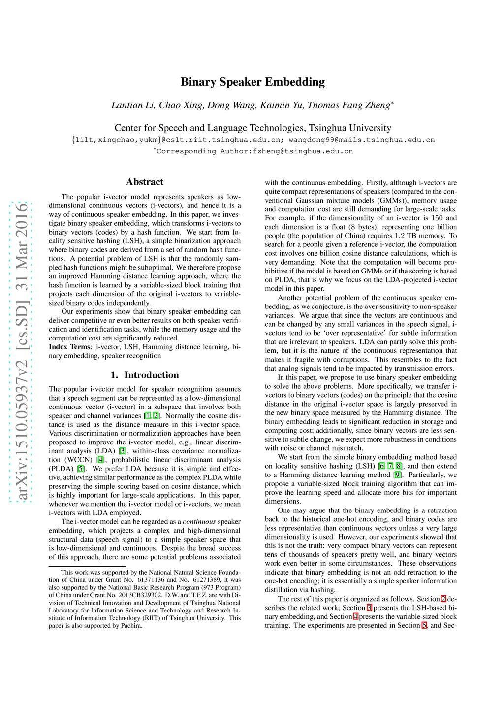 Binary Speaker Embedding