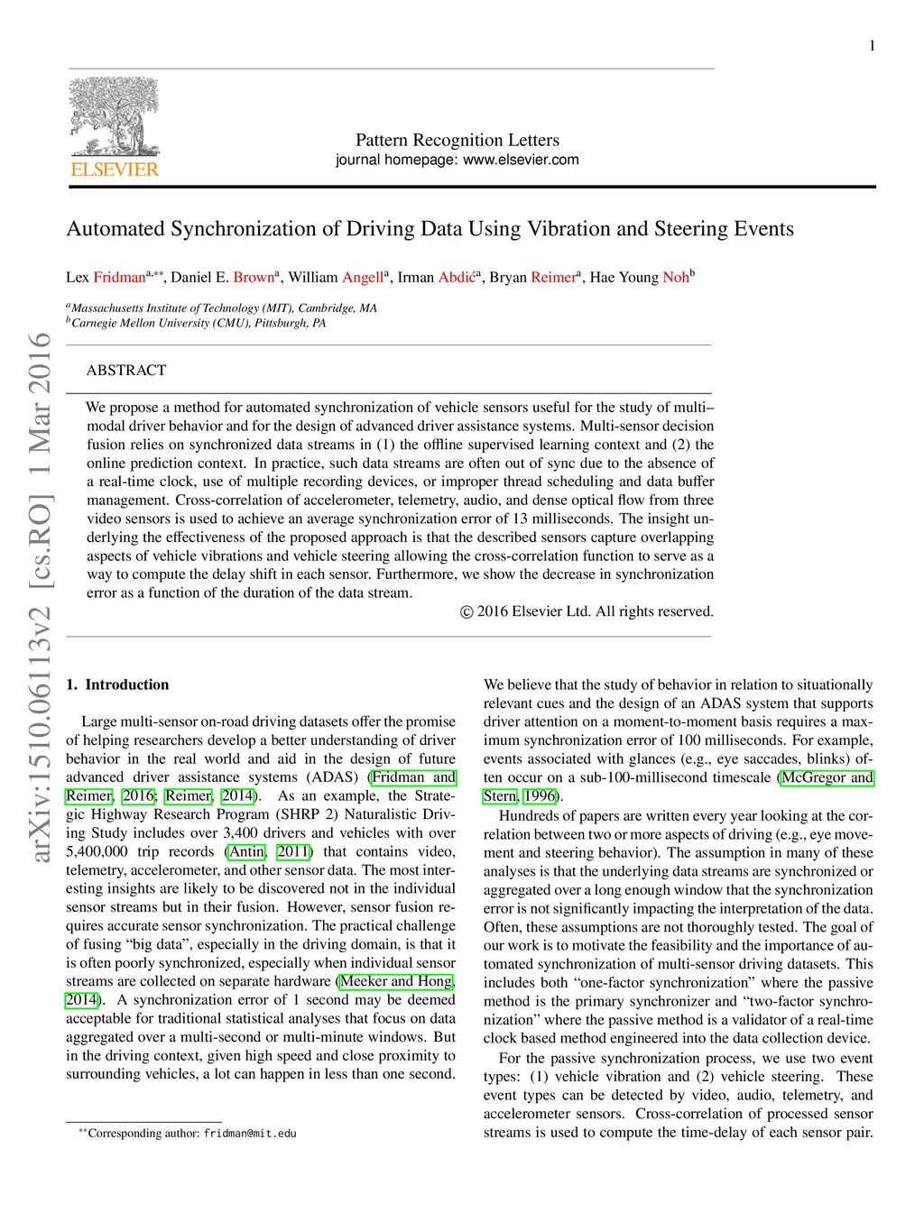 Automated Synchronization of Driving Data Using Vibration and Steering