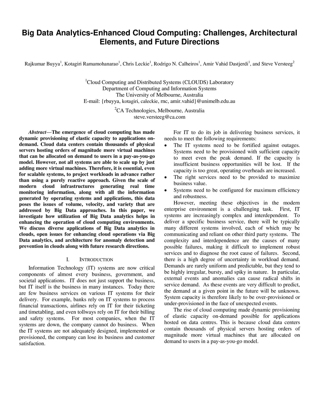 Big Data Analytics-Enhanced Cloud Computing: Challenges, Architectural
