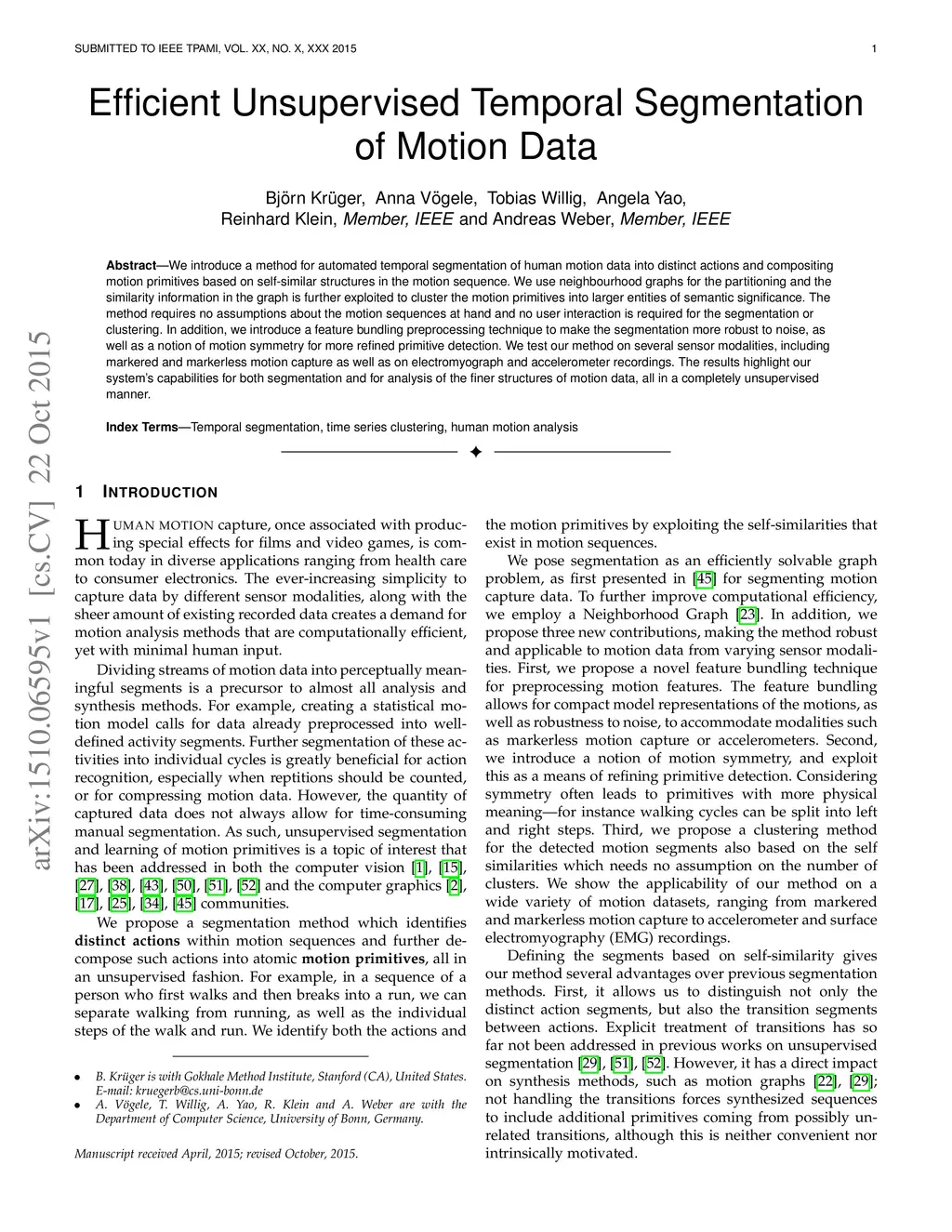 Efficient Unsupervised Temporal Segmentation of Motion Data