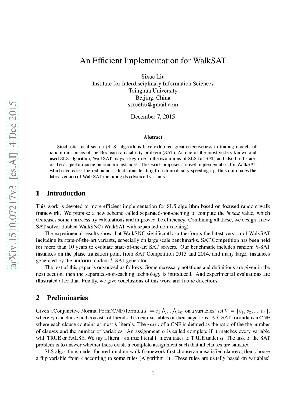 An Efficient Implementation for WalkSAT
