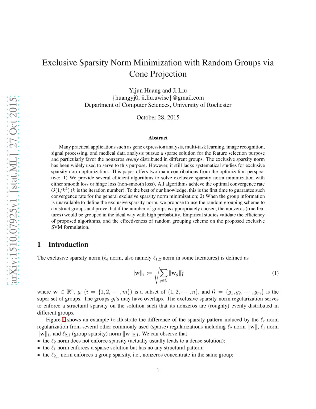 Exclusive Sparsity Norm Minimization with Random Groups via Cone