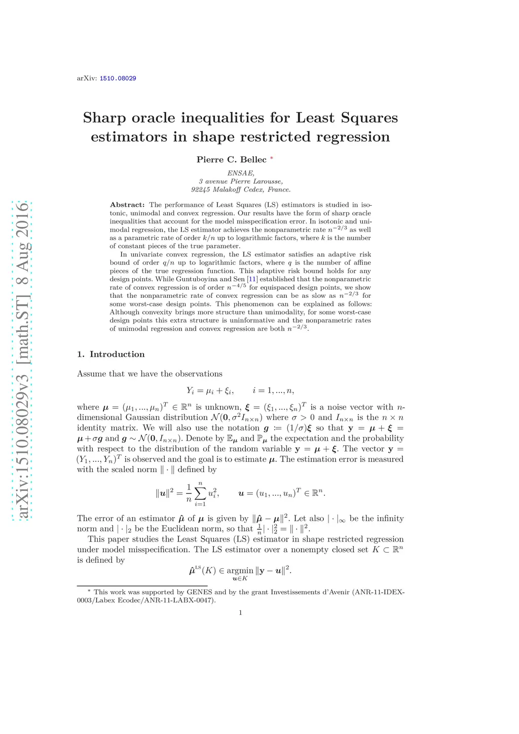 The performance of Least Squares (LS) estimators is studied in isotonic, unimodal and convex regression. Our results have the form of sharp oracle inequalities that account for the model misspecification error. In isotonic and unimodal regression, the LS estimator achieves the nonparametric rate as well as a parametric rate of order up to logarithmic factors, where is the number of constant pieces of the true parameter. In univariate convex regression, the LS estimator satisfies an adaptive risk bound of order up to logarithmic factors, where is the number of affine pieces of the true regression function. This adaptive risk bound holds for any design points. While Guntuboyina and Sen (2013) established that the nonparametric rate of convex regression is of order for equispaced design points, we show that the nonparametric rate of convex regression can be as slow as for some worst-case design points. This phenomenon can be explained as follows: Although convexity brings more structure than unimodality, for some worst-case design points this extra structure is uninformative and the nonparametric rates of unimodal regression and convex regression are both .