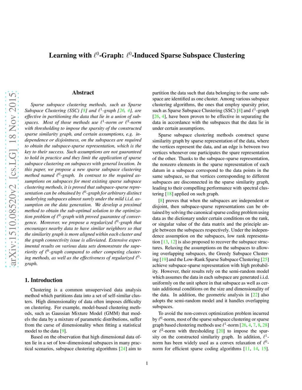 -graph \cite{YanW09,ChengYYFH10}, a sparse graph built by reconstructing each datum with all the other data using sparse representation, has been demonstrated to be effective in clustering high dimensional data and recovering independent subspaces from which the data are drawn. It is well known that -norm used in -graph is a convex relaxation of -norm for enforcing the sparsity. In order to handle general cases when the subspaces are not independent and follow the original principle of sparse representation, we propose a novel -graph that employs -norm to encourage the sparsity of the constructed graph, and develop a proximal method to solve the associated optimization problem with the proved guarantee of convergence. Extensive experimental results on various data sets demonstrate the superiority of -graph compared to other competing clustering methods including -graph.