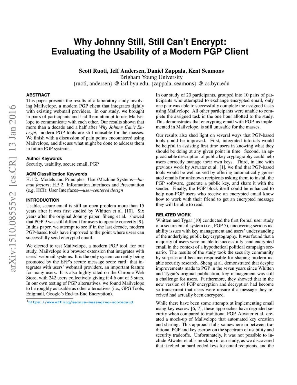 Why Johnny Still, Still Can't Encrypt: Evaluating the Usability of a
