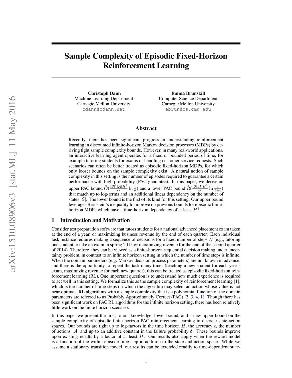 Sample Complexity of Episodic Fixed-Horizon Reinforcement Learning