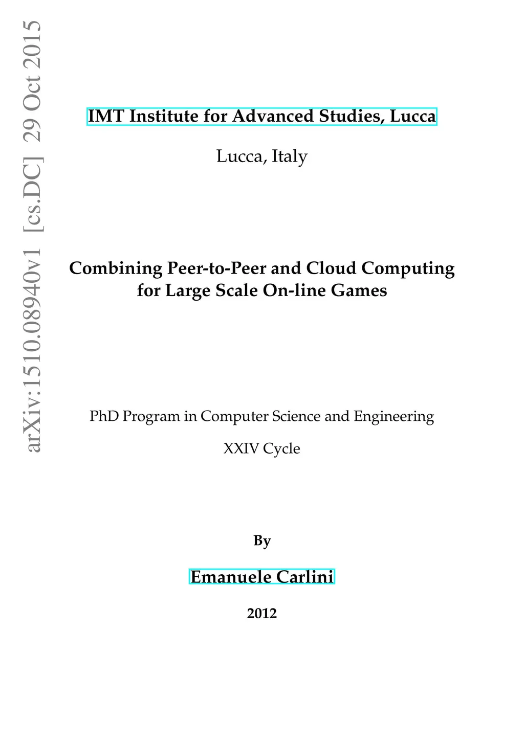 Combining Peer-to-Peer and Cloud Computing for Large Scale On-line Games
