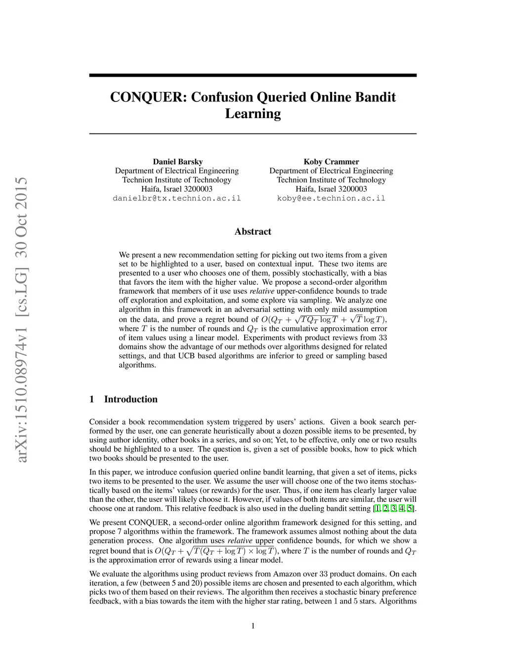 CONQUER: Confusion Queried Online Bandit Learning