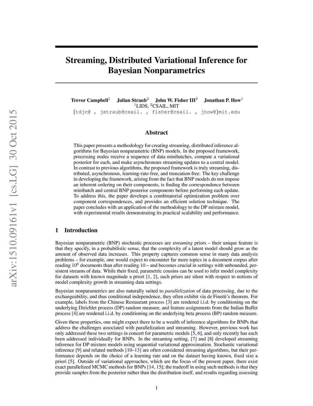 Streaming, Distributed Variational Inference for Bayesian Nonparametrics