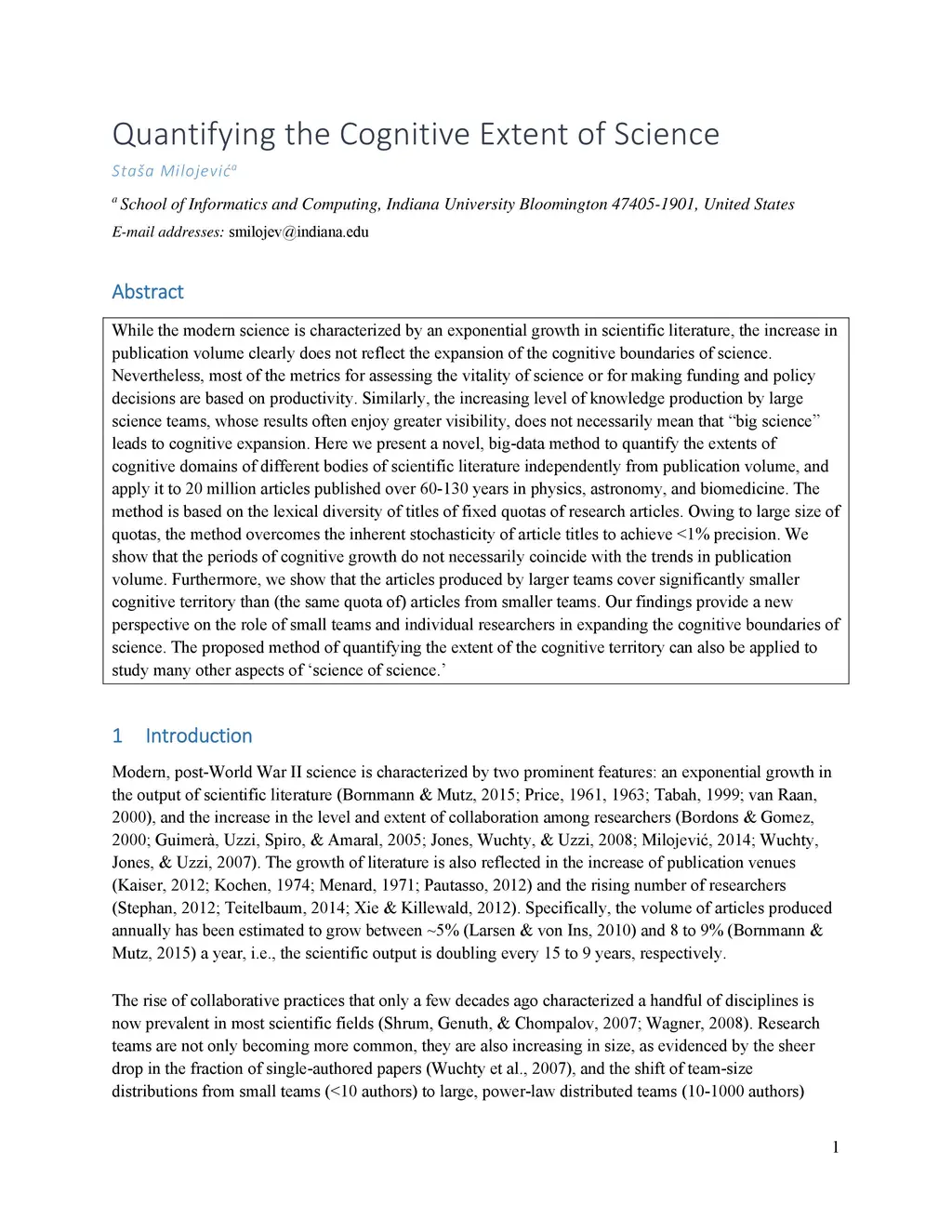 Quantifying the Cognitive Extent of Science