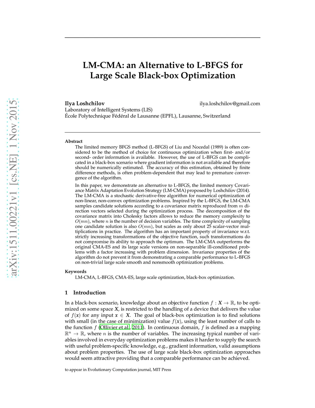 LM-CMA: an Alternative to L-BFGS for Large Scale Black-box Optimization