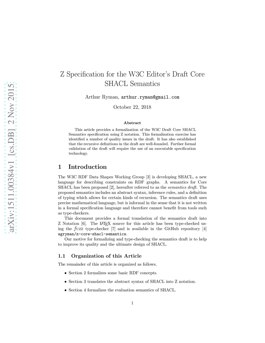 Z Specification for the W3C Editor's Draft Core SHACL Semantics