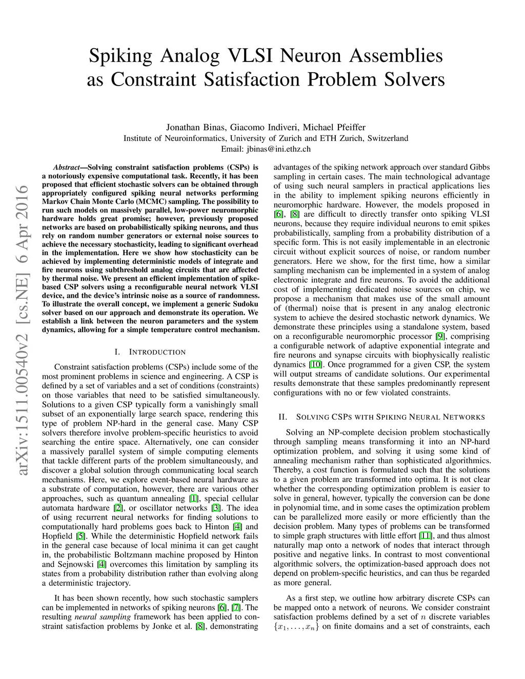 Spiking Analog VLSI Neuron Assemblies as Constraint Satisfaction Problem