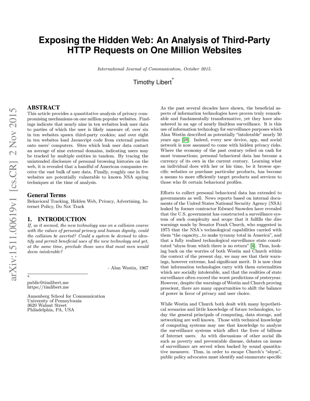 Exposing the Hidden Web: An Analysis of Third-Party HTTP Requests on 1
