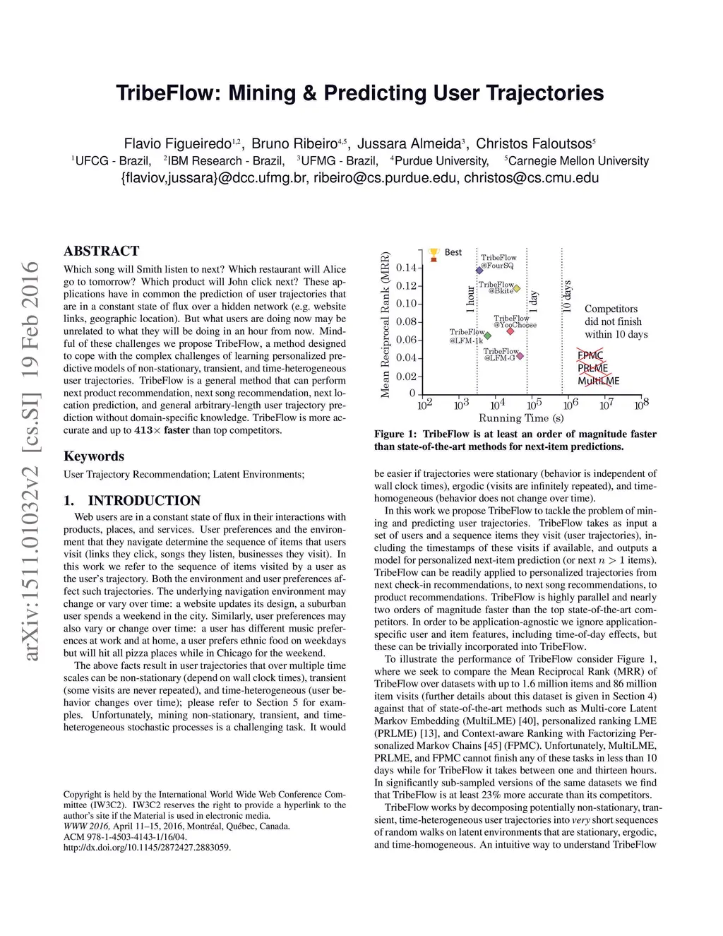Which song will Smith listen to next? Which restaurant will Alice go to tomorrow? Which product will John click next? These applications have in common the prediction of user trajectories that are in a constant state of flux over a hidden network (e.g. website links, geographic location). What users are doing now may be unrelated to what they will be doing in an hour from now. Mindful of these challenges we propose TribeFlow, a method designed to cope with the complex challenges of learning personalized predictive models of non-stationary, transient, and time-heterogeneous user trajectories. TribeFlow is a general method that can perform next product recommendation, next song recommendation, next location prediction, and general arbitrary-length user trajectory prediction without domain-specific knowledge. TribeFlow is more accurate and up to 413x faster than top competitors.