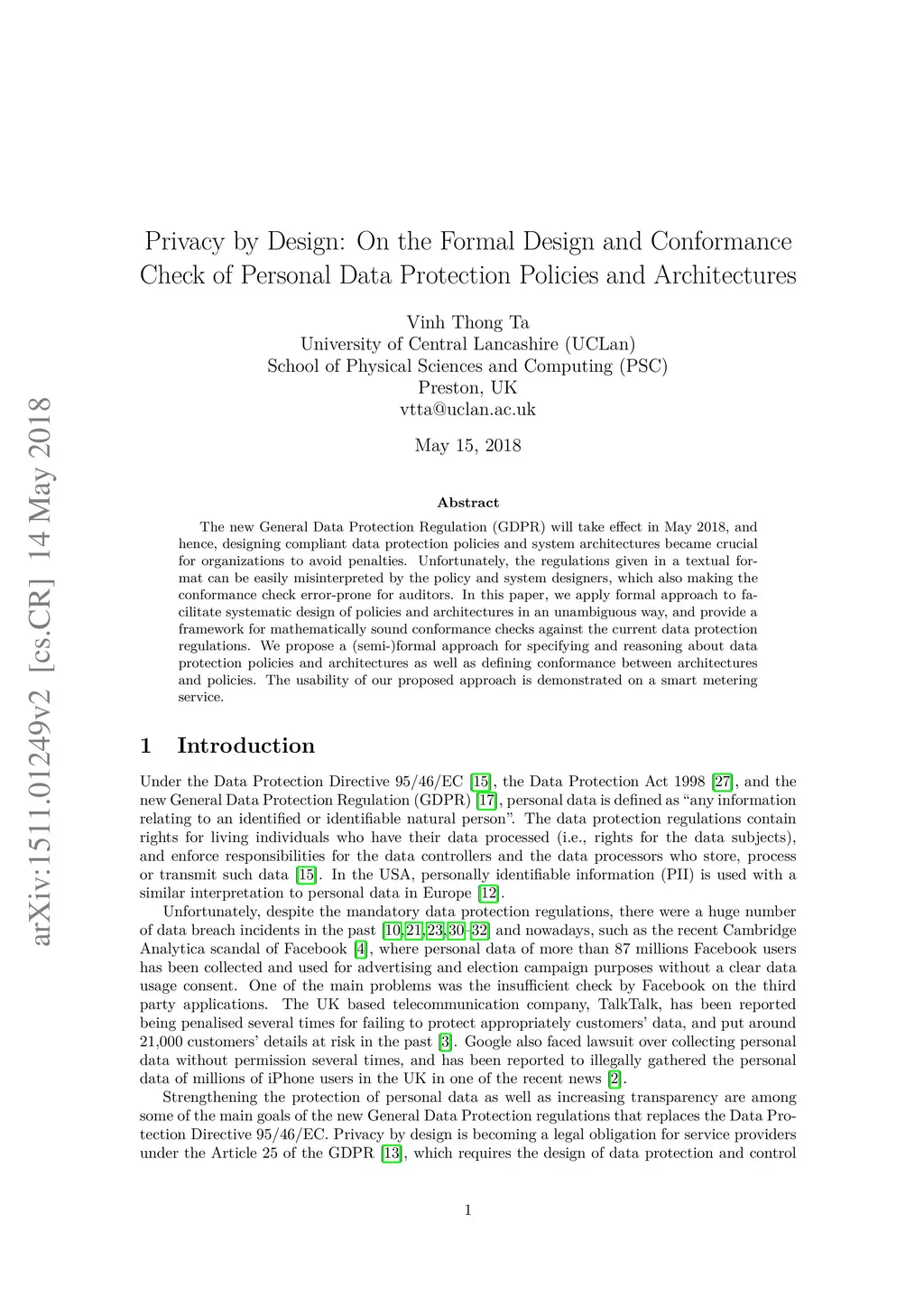 Personal Data Protection Policies and Architectures