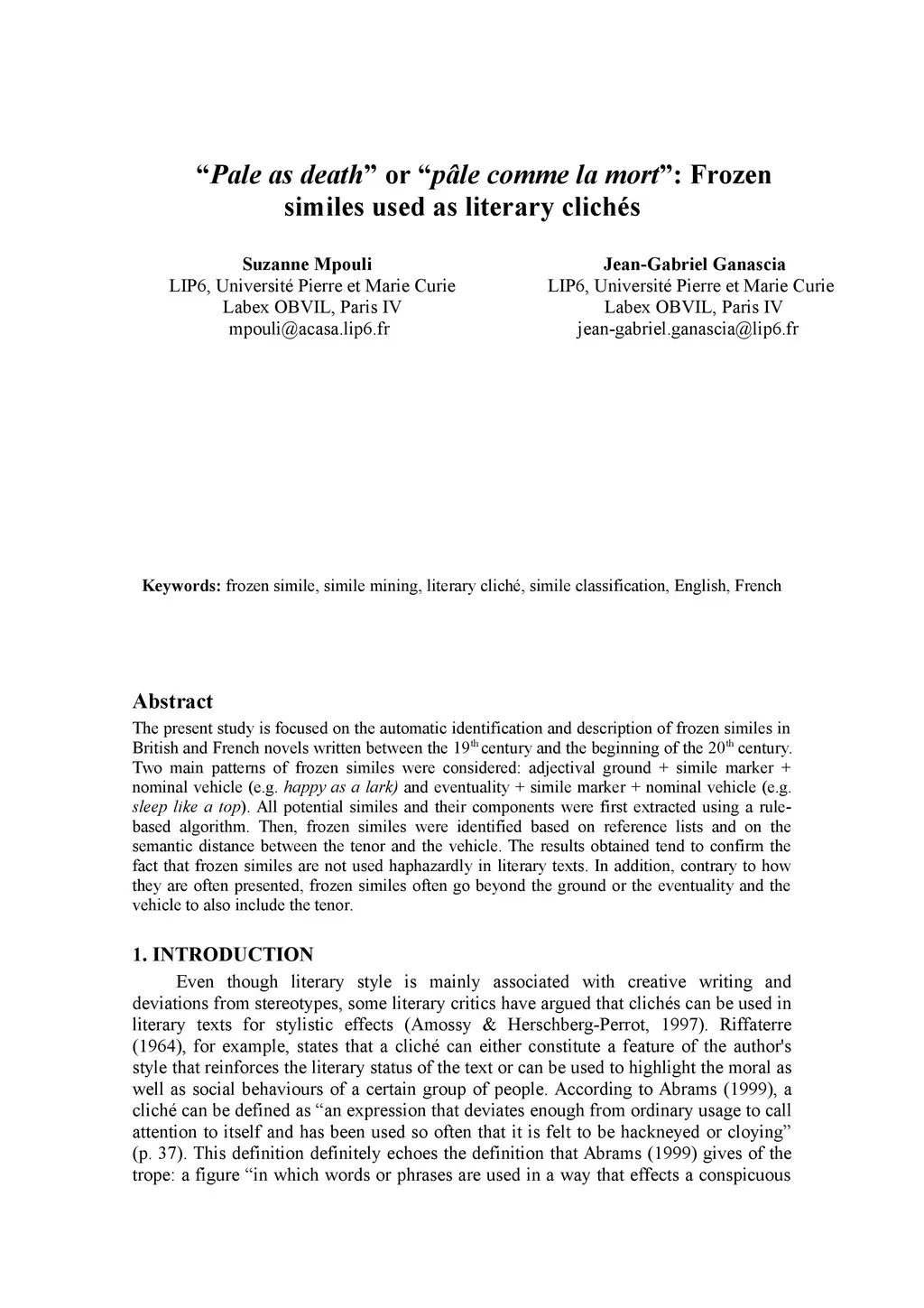 "Pale as death" or "pâle comme la mort" : Frozen similes used as