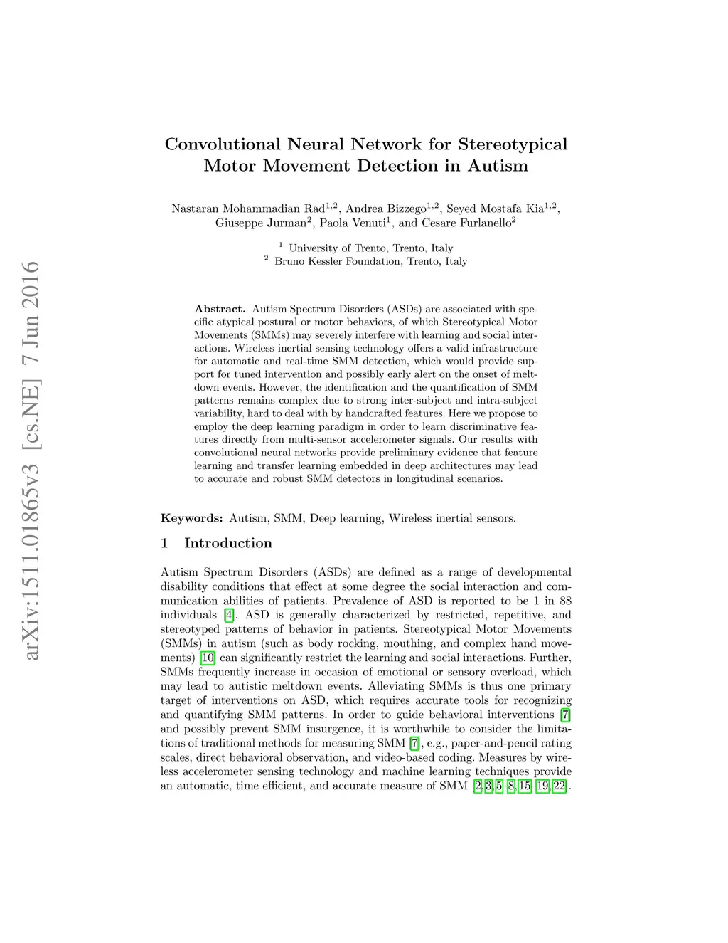 Convolutional Neural Network for Stereotypical Motor Movement Detection