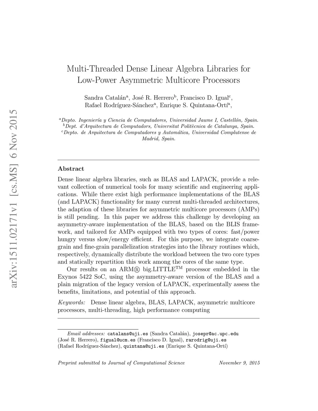 Multi-Threaded Dense Linear Algebra Libraries for Low-Power Asymmetric