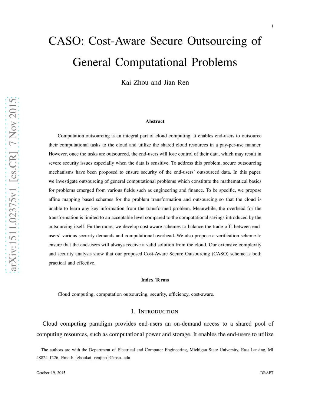 CASO: Cost-Aware Secure Outsourcing of General Computational Problems