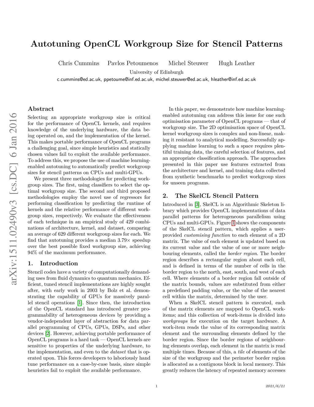 Autotuning OpenCL Workgroup Size for Stencil Patterns