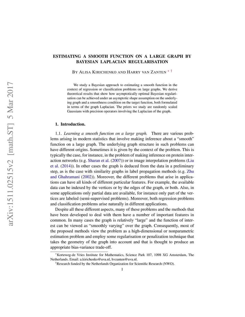 We study a Bayesian approach to estimating a smooth function in the context of regression or classification problems on large graphs. We derive theoretical results that show how asymptotically optimal Bayesian regularization can be achieved under an asymptotic shape assumption on the underlying graph and a smoothness condition on the target function, both formulated in terms of the graph Laplacian. The priors we study are randomly scaled Gaussians with precision operators involving the Laplacian of the graph.