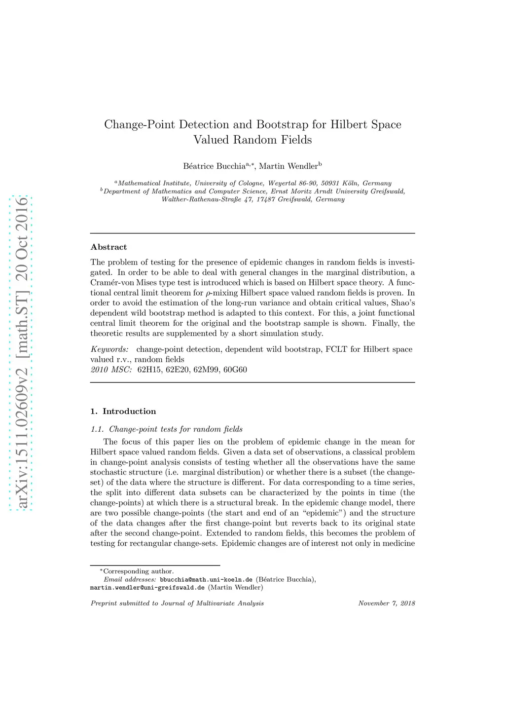 Change-Point Detection and Bootstrap for Hilbert Space Valued Random