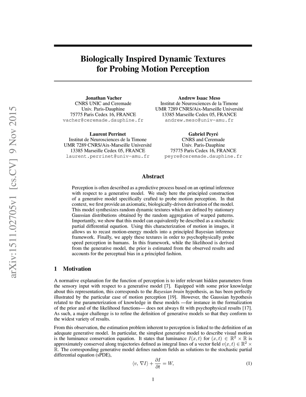 Biologically Inspired Dynamic Textures for Probing Motion Perception