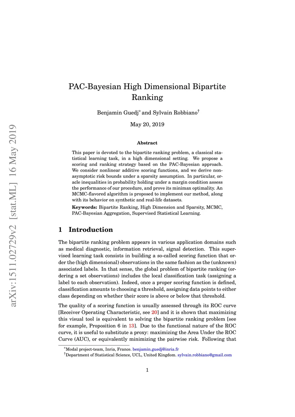 PAC-Bayesian High Dimensional Bipartite Ranking