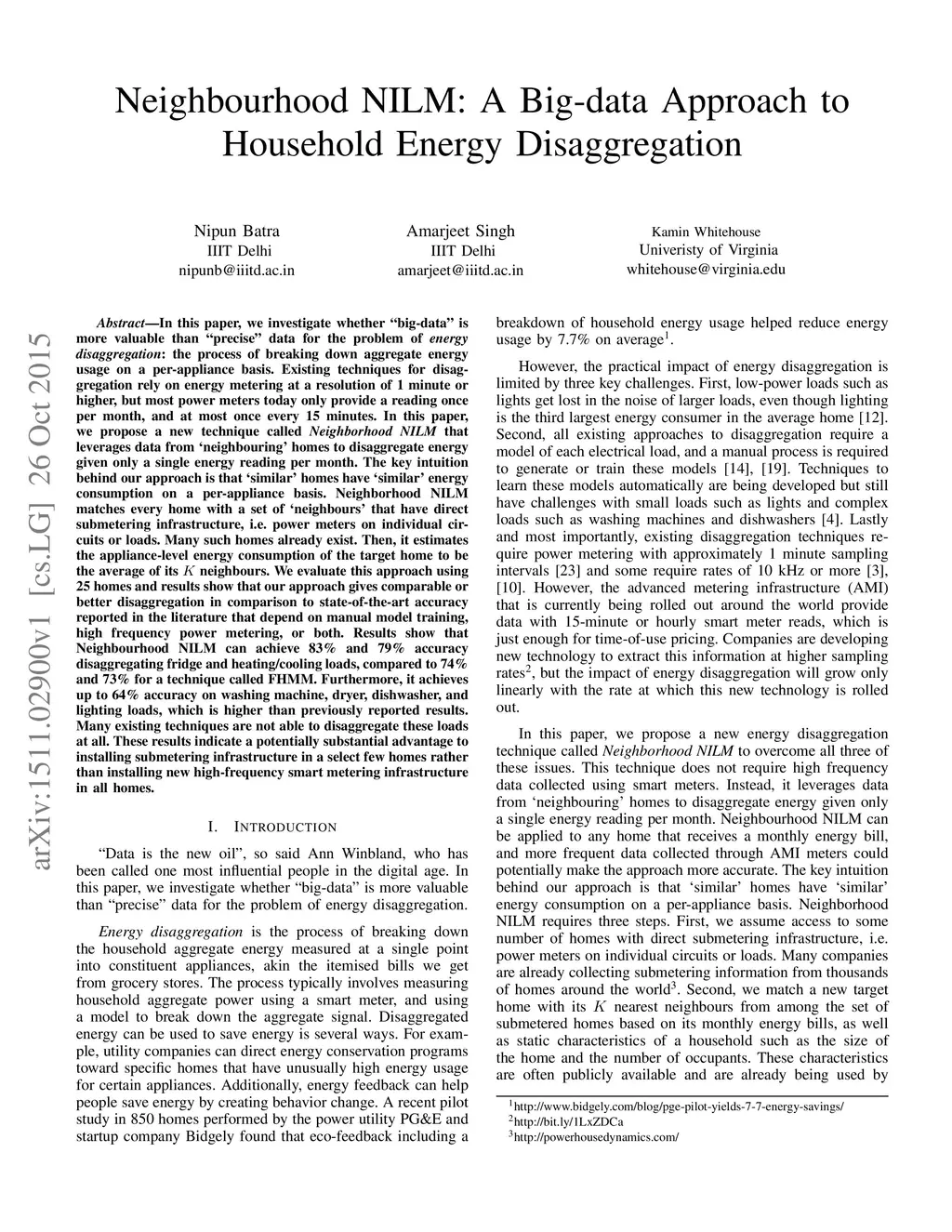 Neighbourhood NILM: A Big-data Approach to Household Energy