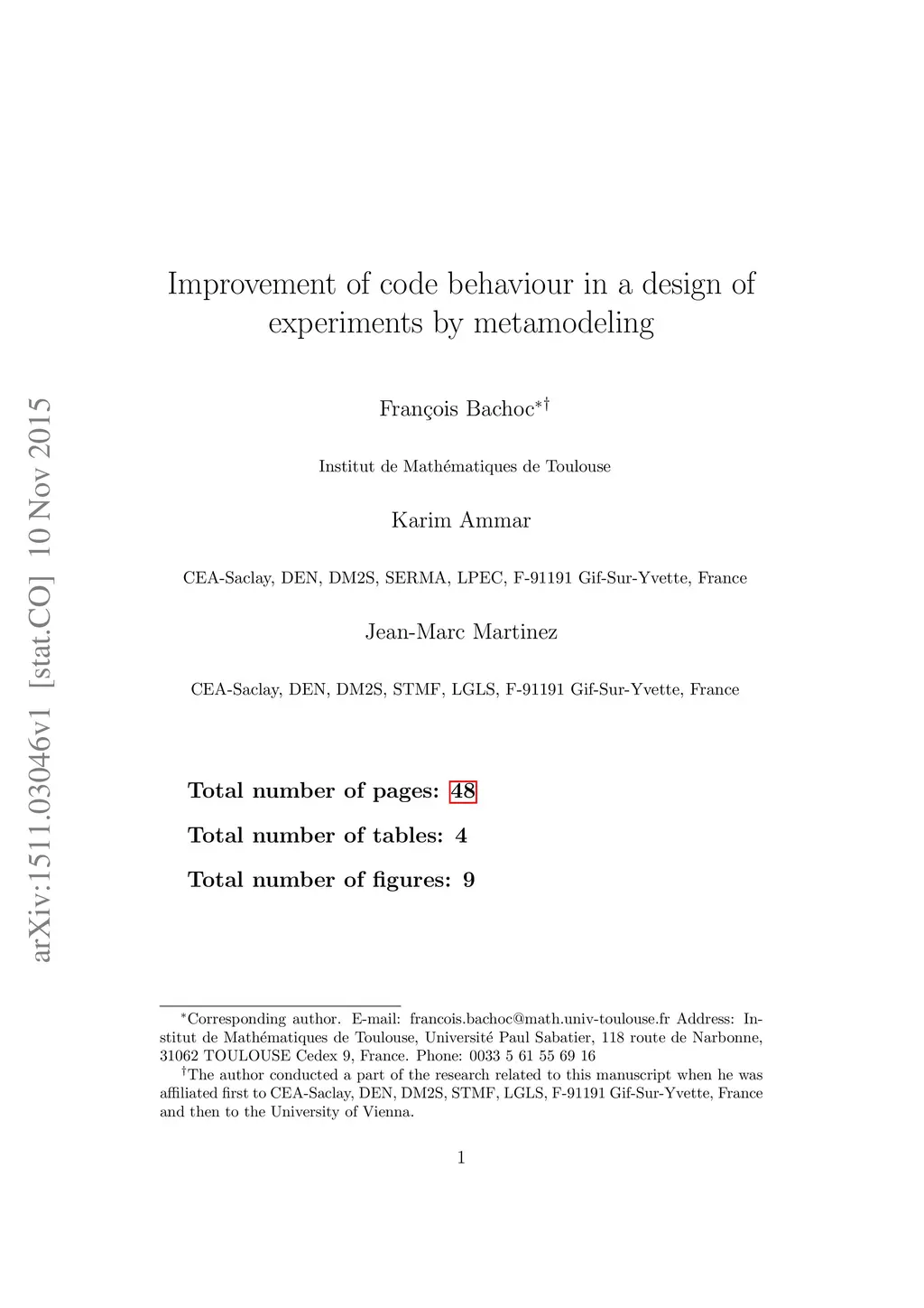 Improvement of code behaviour in a design of experiments by metamodeling