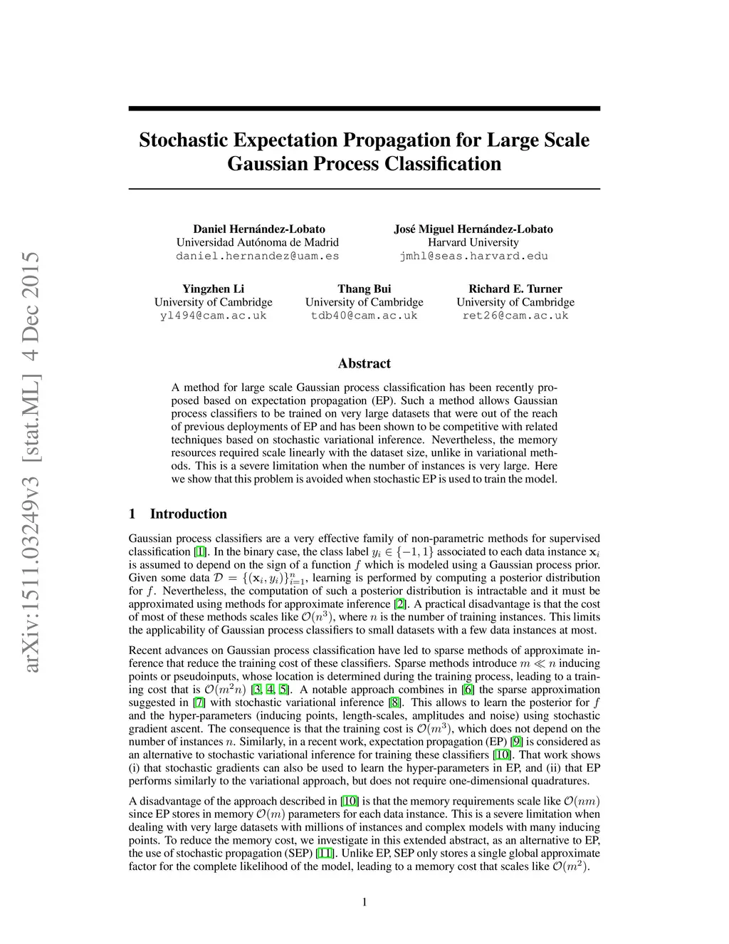 A method for large scale Gaussian process classification has been recently proposed based on expectation propagation (EP). Such a method allows Gaussian process classifiers to be trained on very large datasets that were out of the reach of previous deployments of EP and has been shown to be competitive with related techniques based on stochastic variational inference. Nevertheless, the memory resources required scale linearly with the dataset size, unlike in variational methods. This is a severe limitation when the number of instances is very large. Here we show that this problem is avoided when stochastic EP is used to train the model.