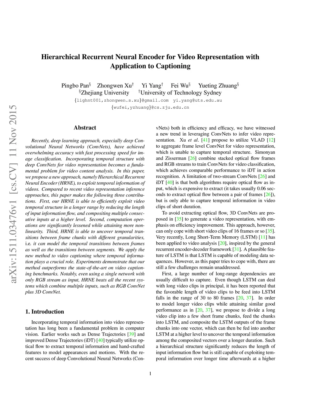 Hierarchical Recurrent Neural Encoder for Video Representation with