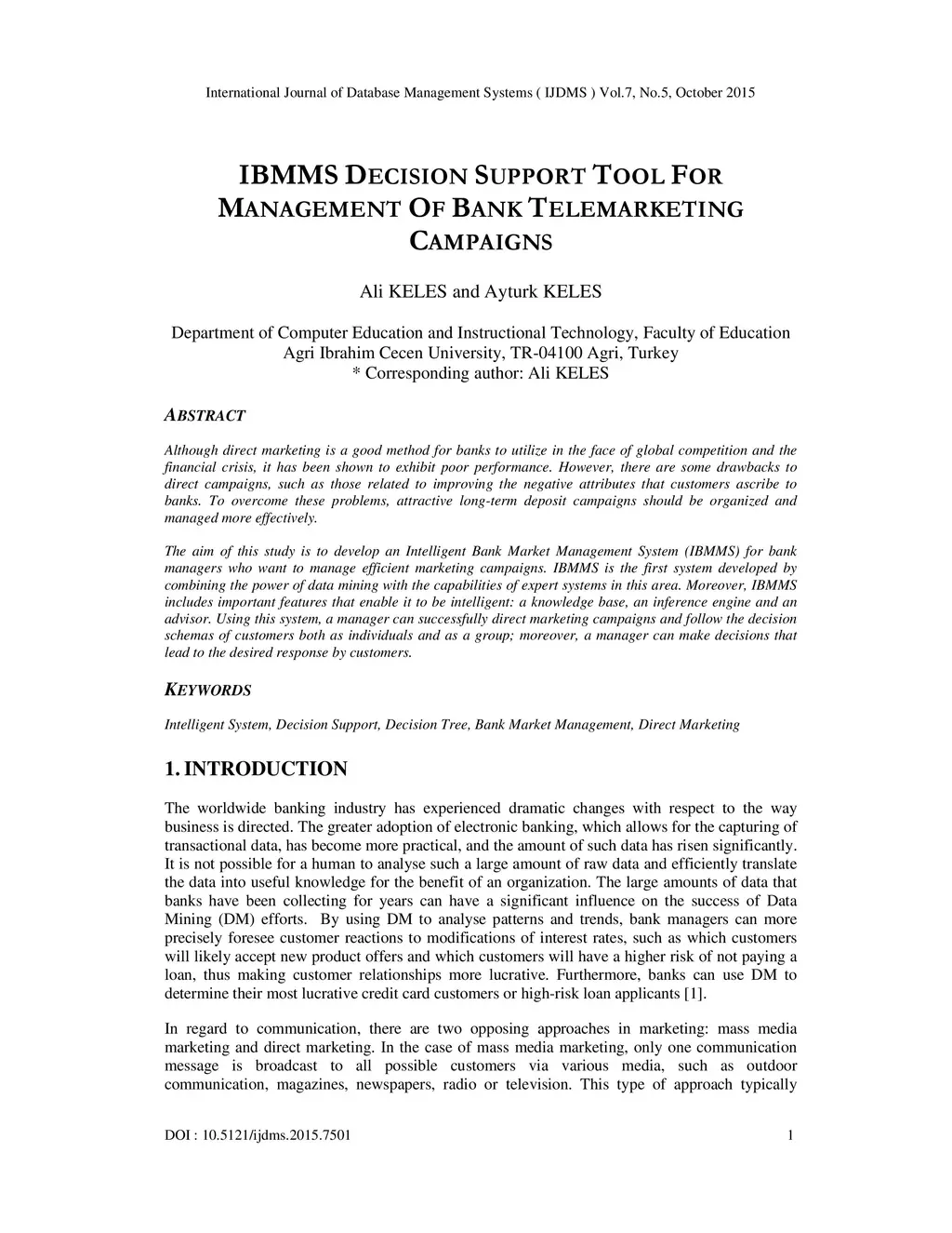 IBMMS Decision Support Tool For Management of Bank Telemarketing