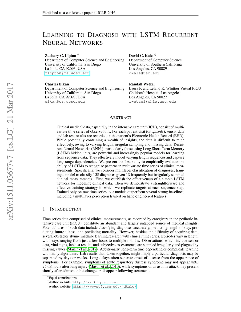 Learning to Diagnose with LSTM Recurrent Neural Networks
