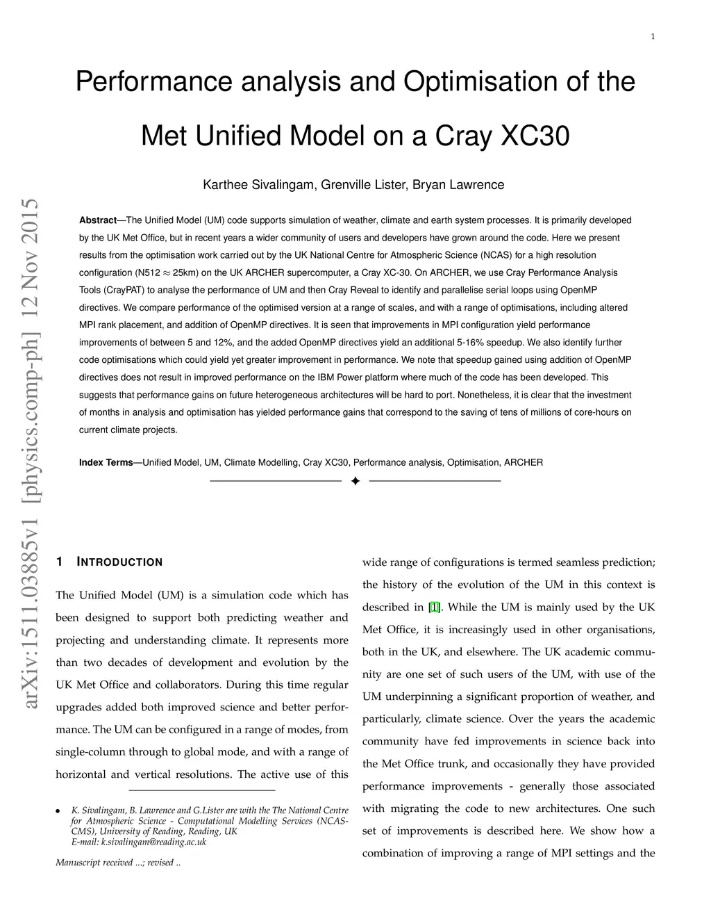 Performance analysis and Optimisation of the Met Unified Model on a Cray