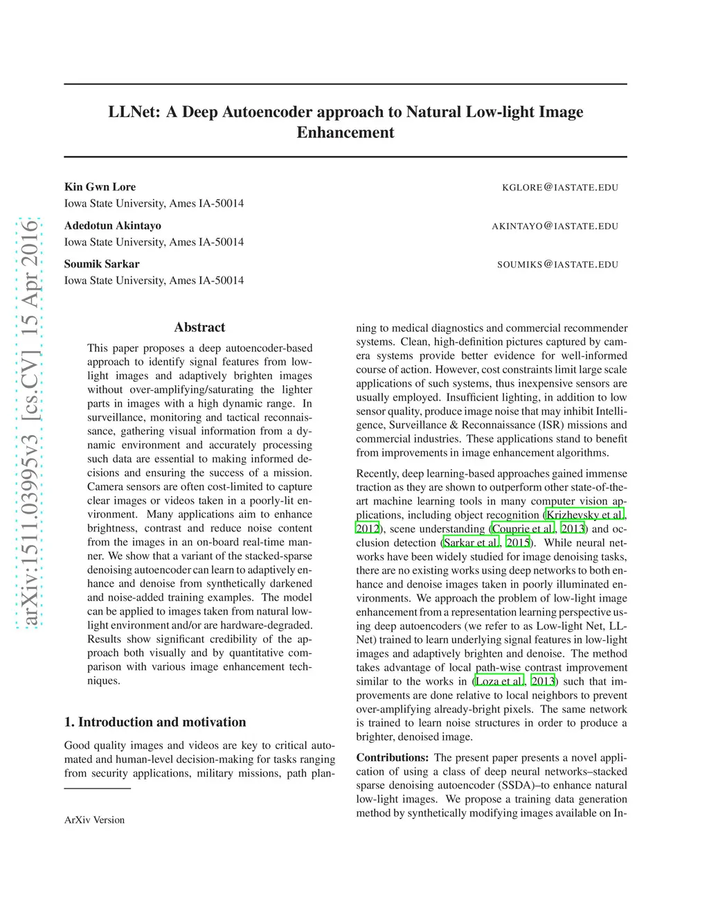 LLNet: A Deep Autoencoder Approach to Natural Low-light Image