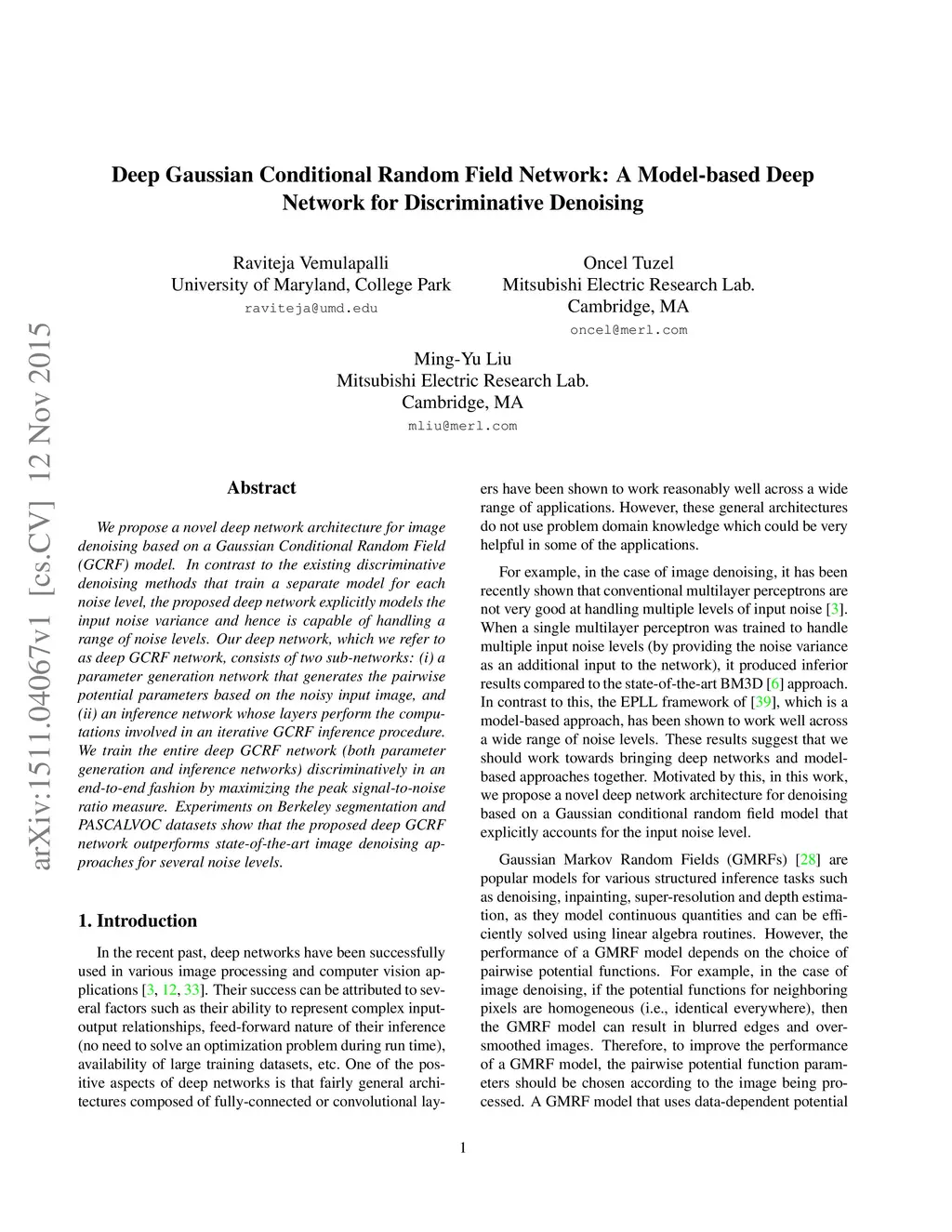 Deep Gaussian Conditional Random Field Network: A Model-based Deep