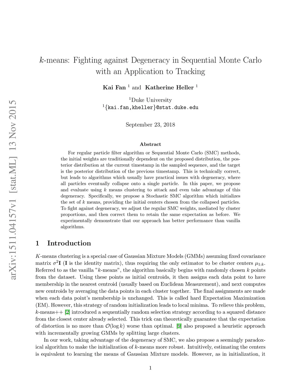 -means: Fighting against Degeneracy in Sequential Monte Carlo with an