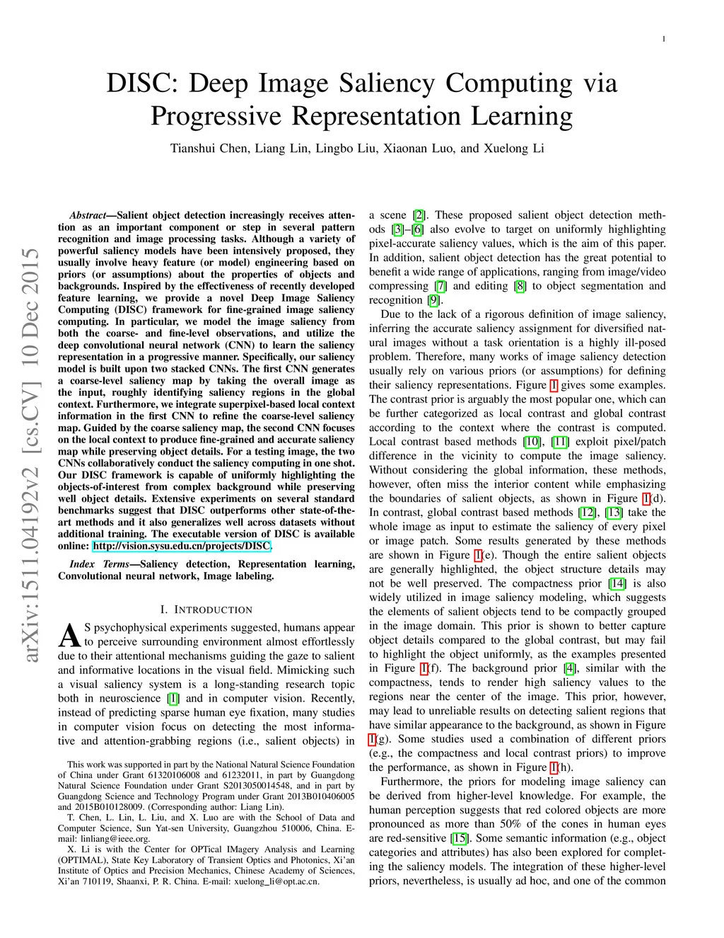 DISC: Deep Image Saliency Computing via Progressive Representation