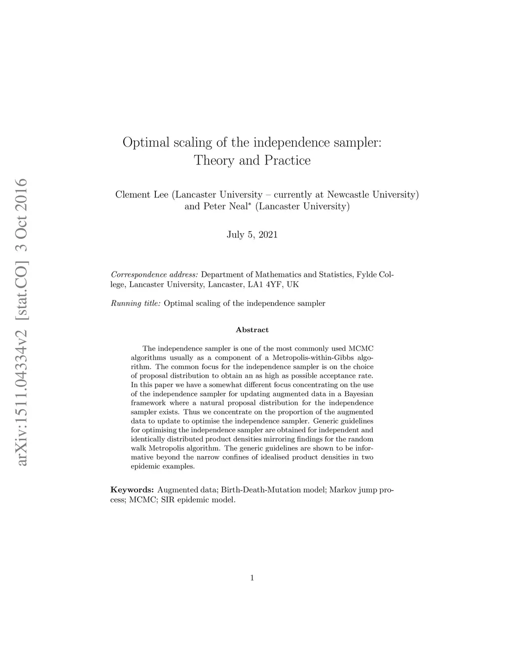 The independence sampler is one of the most commonly used MCMC algorithms usually as a component of a Metropolis-within-Gibbs algorithm. The common focus for the independence sampler is on the choice of proposal distribution to obtain an as high as possible acceptance rate. In this paper we have a somewhat different focus concentrating on the use of the independence sampler for updating augmented data in a Bayesian framework where a natural proposal distribution for the independence sampler exists. Thus we concentrate on the proportion of the augmented data to update to optimise the independence sampler. Generic guidelines for optimising the independence sampler are obtained for independent and identically distributed product densities mirroring findings for the random walk Metropolis algorithm. The generic guidelines are shown to be informative beyond the narrow confines of idealised product densities in two epidemic examples.